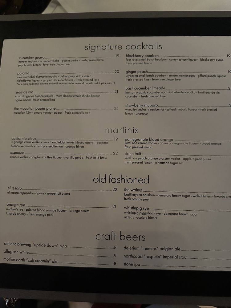 The appetizer selection showcases creative offerings like Crispy Shrimp and Chef's Cut Hanging Bacon that promise to tantalize your taste buds. Salads, such as the Chopped Napa, are light yet flavorful, serving as perfect starters. For the main event, options like the Branzino and Arctic Char highlight fresh flavors and impeccable cooking techniques.